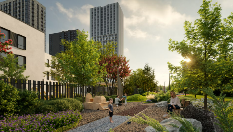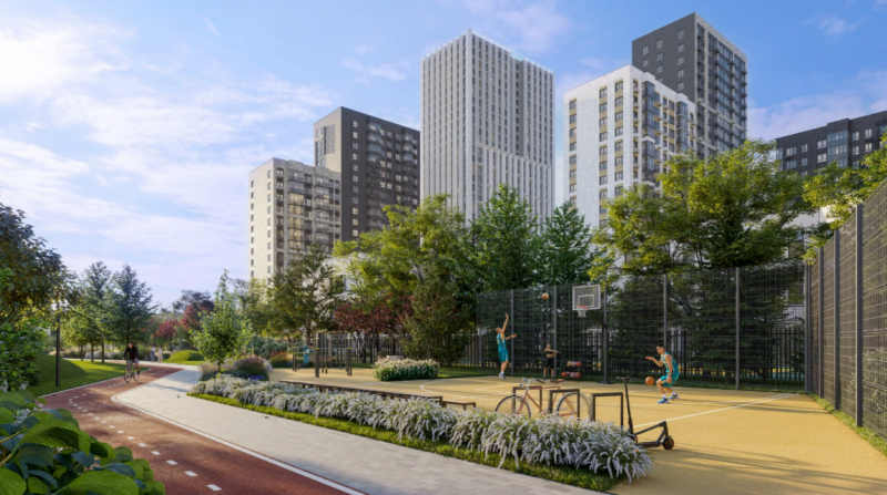 На территории комплекса раскинется собственный парк с функциональными зонами — для тихого отдыха, ежедневных прогулок, детских игр и занятий спортом.