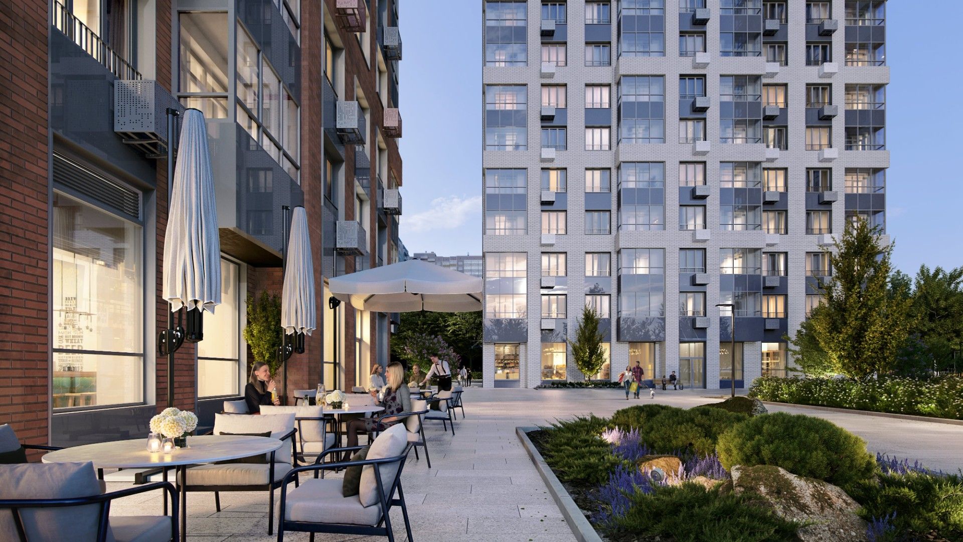 Инфраструктура внутренней территории комплекса позволяет организовать во дворе парковки для велосипедов и самокатов, а также специальные станции, на которых можно быстро зарядить ваш электрокар или самокат. Вам не обязательно покидать территорию проекта, чтобы провести свободный вечер. Двор жилого комплекса включает в себя на зоны для детей, для работы и спорта, прогулок и для тихого уединения, а на первых этажах башен для вас открыты уютные кафе. Все продуманно до мелочей.