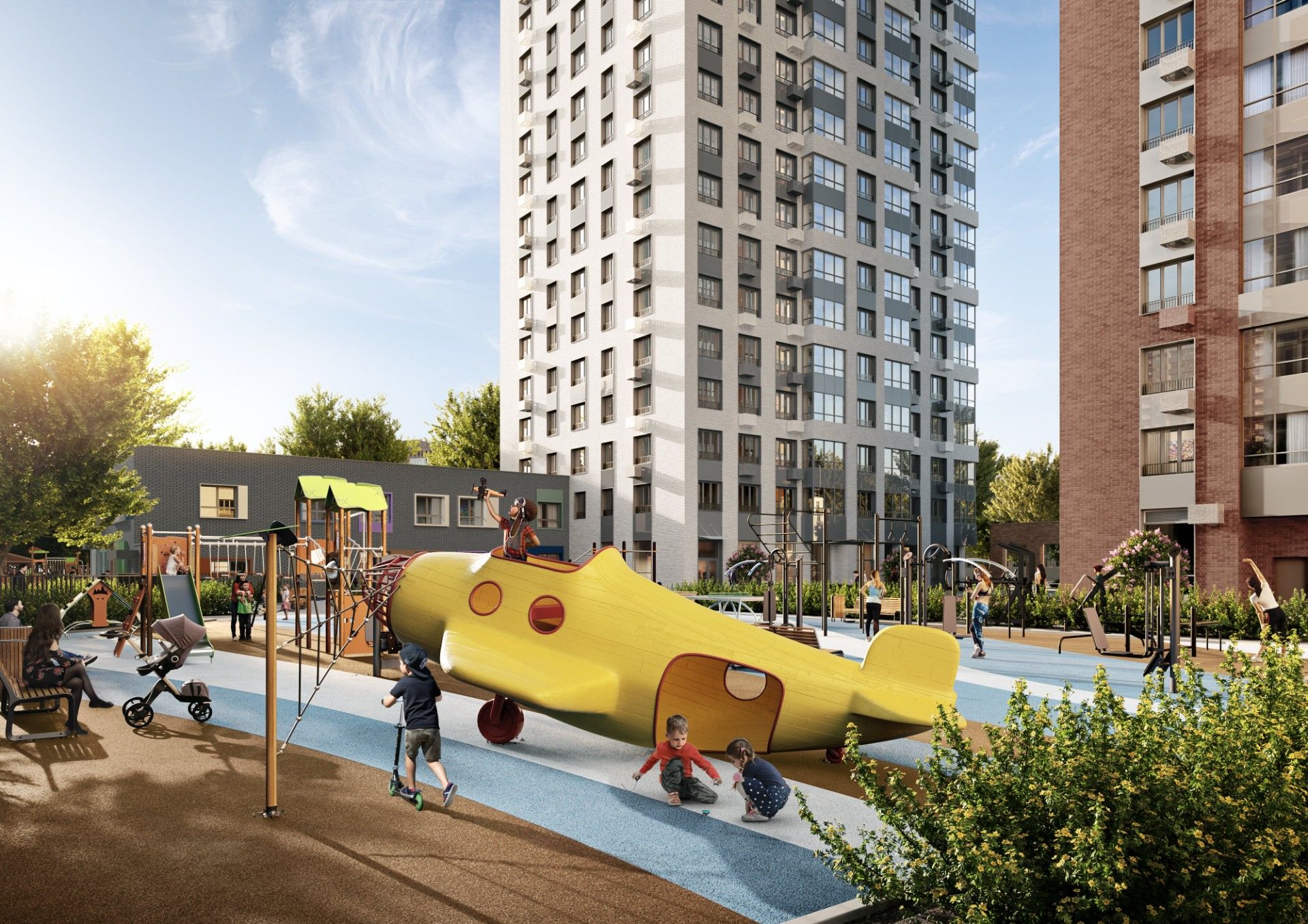 Здесь вы найдете три большие игровые площадки для детей разных возрастов. А для взрослых — прогулочные маршруты, воркаут-зоны и даже собственный коворкинг под открытым небом. Лаконичный ландшафтный дизайн и контрастное озеленение территории крупными породами хвойных и лиственных деревьев, аккуратными кустарниками и ухоженными цветочными клумбами.
