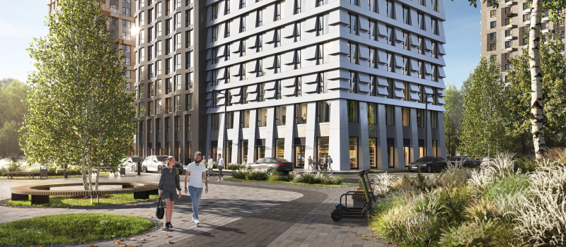 Проектом предусмотрены входы на уровне земли, без ступеней, порогов и пандусов — так удобнее и безопаснее. У подъездов будет два выхода: на улицу и во двор-парк. В наших дворах мы установим столы и лавочки со встроенными зарядными устройствами. Не нужно будет возвращаться домой, чтобы зарядить смартфон или ноутбук: можно весь день работать на свежем воздухе