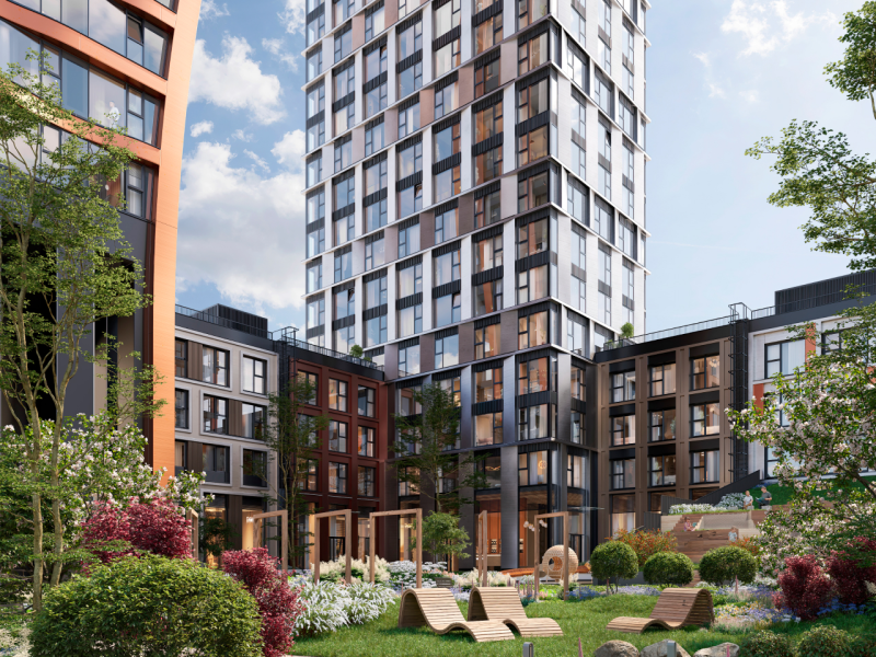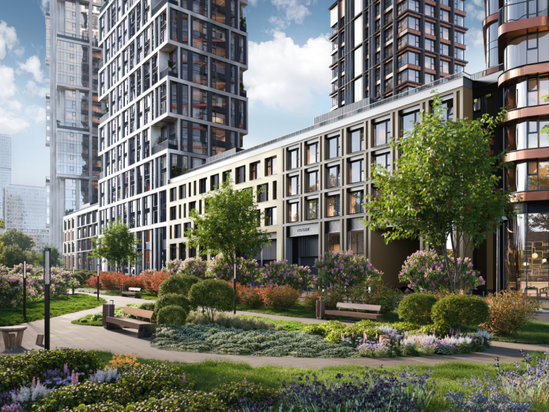 Концепция благоустройства территории мультиквартала предусматривает большое количество зеленых насаждений, что создает ощущение максимальной близости к природе. Жителей квартала ждут места для отдыха, игр, занятий спортом и прогулок с домашними питомцами: