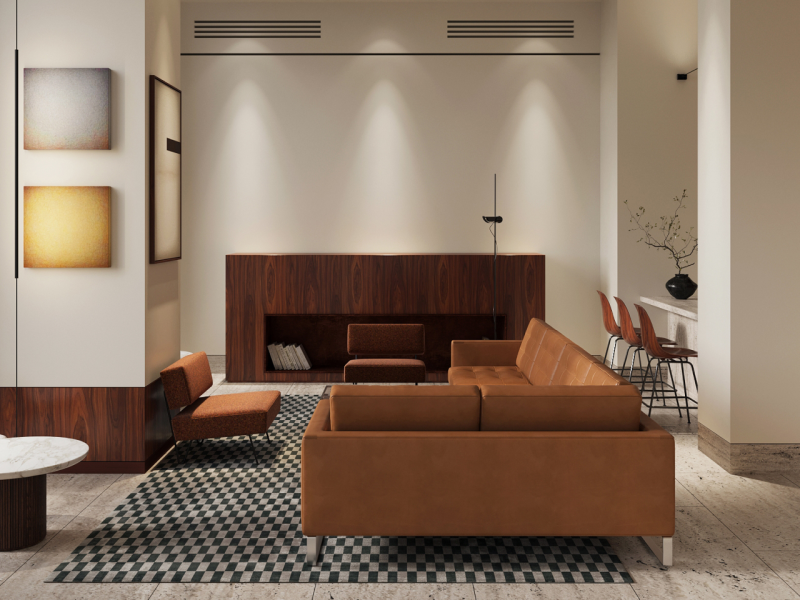 • Комфортные зоны ожидания с мягкой мебелью и кофепоинтами