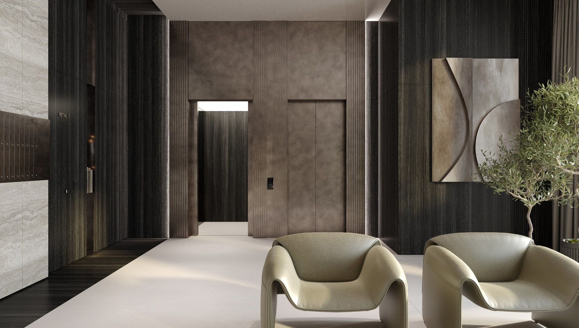 Просторное арт-лобби в нью-йоркском стиле с уникальными предметами искусства подчеркивает премиальный статус дома/