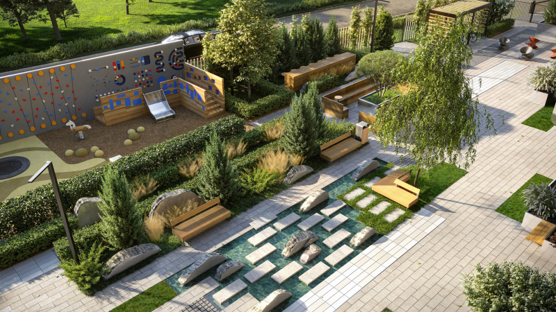 Рядом с домом – живописные парковые пространства: старый сиреневый сад, парк «Берёзовая роща», ухоженные скверы. В шаговой доступности расположены корпуса Курчатовской средней школы, частные и городские детские сады. На первом этаже дома разместятся уютные магазины, салоны красоты и кафе.