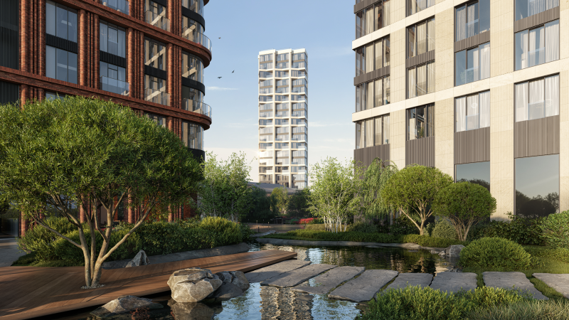 «Тишинский бульвар» — тихий зелёный элитный квартал на Тишинке, в престижном и комфортном районе центра Москвы. В нём создан уникальный для элитного дома прогулочный бульвар в своём огромном парке 1,9 га. Здесь оборудованы зоны для активного и тихого отдыха, крытые галереи, приватные зелёные комнаты, многофункциональная спортивная площадка, воркаут-зона, детская площадка, сухой фонтан, ручей.