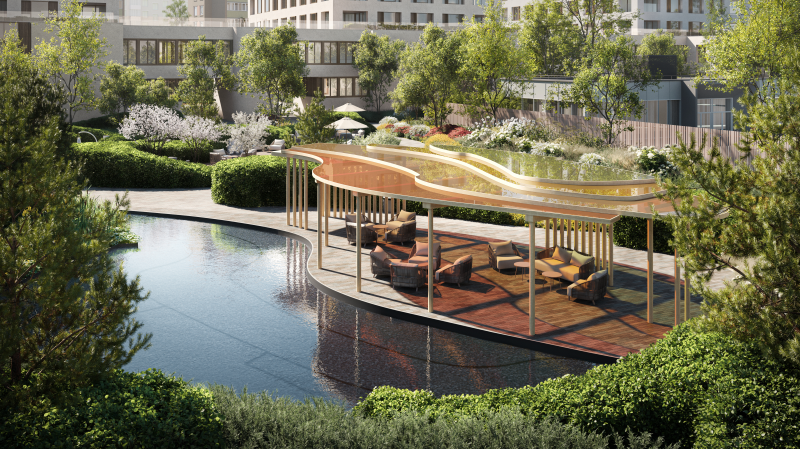 Для спокойного досуга на природе в собственном парке созданы пейзажный пруд с витражным навесом и террасой, тихие зоны у воды, оазисы комфорта — зелёные комнаты с мягкой мебелью и шезлонгами. Парк располагает к прогулкам, в нём много маршрутов вокруг арт-объектов, есть пряный сад с ароматными травами. Здесь можно устроить семейный пикник, почитать книгу в тени деревьев и забыть о том, что живёте в центре города, подарив себе полноценный отдых на природе.