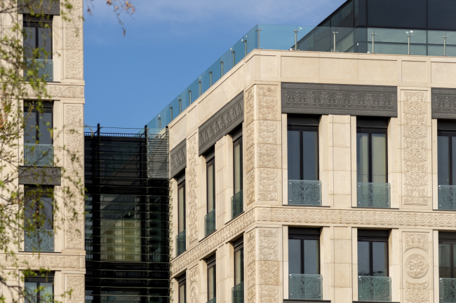 Эксклюзивные фасады с филигранной каменной резьбой, наличие квартир с собственным лифтом, занимающих целый этаж, квартиры с террасами и каминами, французские окна, эксплуатируемая кровля, собственный сад и фитнес-клуб, дизайнерская отделка всех общественных зон, подземный паркинг, общественная зона с каминным залом, мини-баром, детской гостиной и библиотекой, комнаты для прислуги в каждой квартире, круглосуточная охрана собственной службой безопасности, круглосуточные клининговые, курьерские и другие услуги от управляющей компании, три лифта в каждом корпусе – главные преимущества жилого комплекса «Гранатный, 6».
