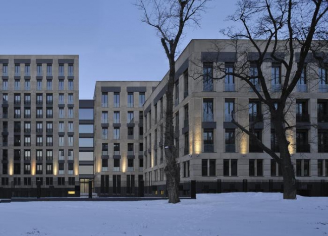 Три корпуса здания образуют уютное полузамкнутое пространство внутреннего двора, в котором располагаются газоны, цветники и прогулочные аллеи.