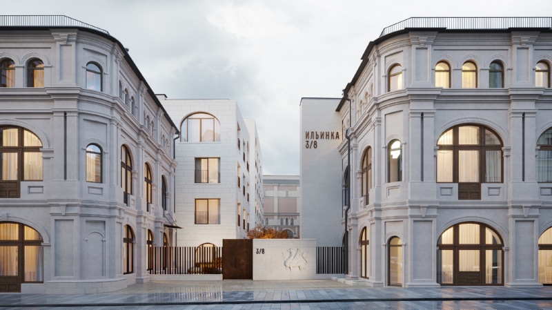 «Ильинка 3/8» — это сервисные резиденции в 7 эксклюзивных особняках: 3 исторических и 4 современных. В «Ильинке 3/8» деликатный сервис отельного уровня для регулярного и нерегулярного пребывания резидентов. Инфраструктура только для своих: красивый двор-сад; лобби-бар, где можно выпить чашечку кофе; Clubhouse, где расположены Lounge для общения резидентов, проведения частных мероприятий и встреч с гостями и бесплатный фитнес по стандарту Fit Lab.
