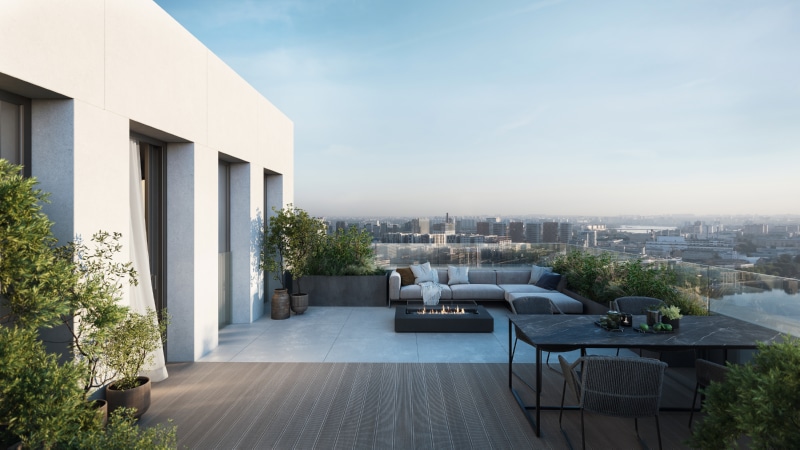 Площади варьируются от компактных 20-метровых студий до просторных трехкомнатных апартаментов с террасами. Представлены варианты с мастер-спальней, окна ванной и гардеробе, просторные террасы 32 кв. м.