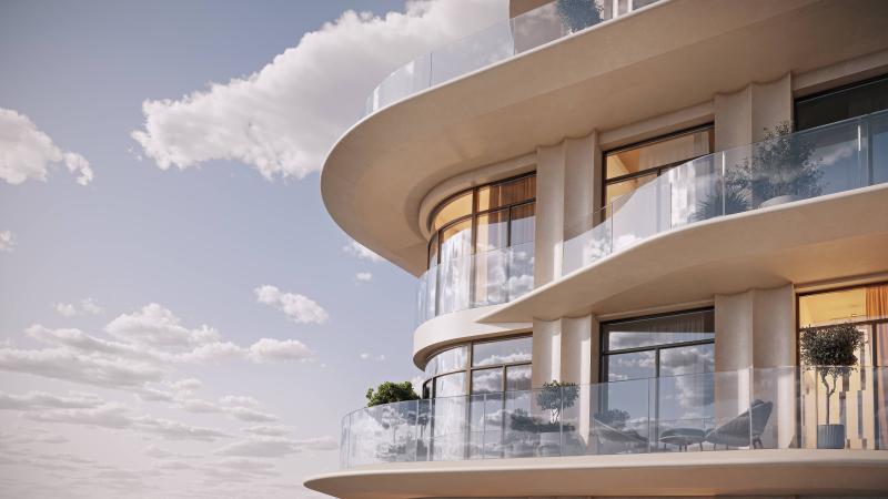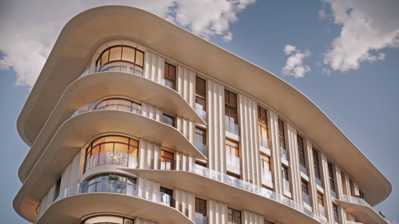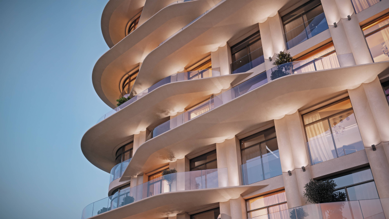 На первых этажах представлены резиденции с собственным патио, а на последних - четыре роскошных пентхауса.