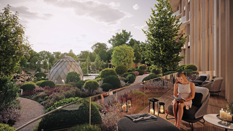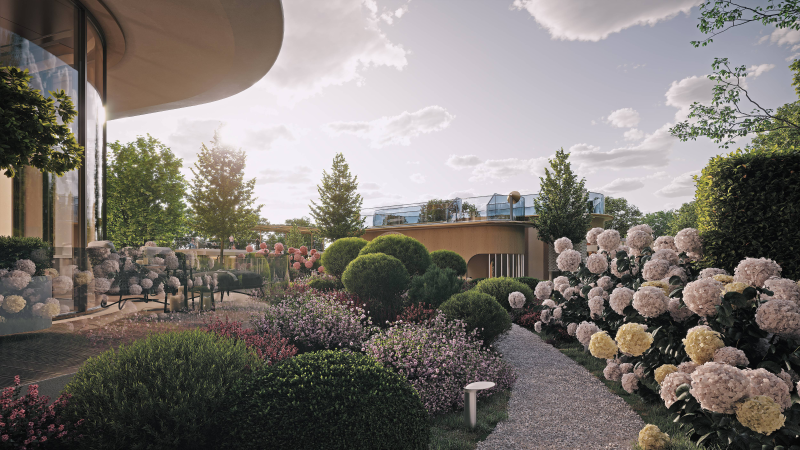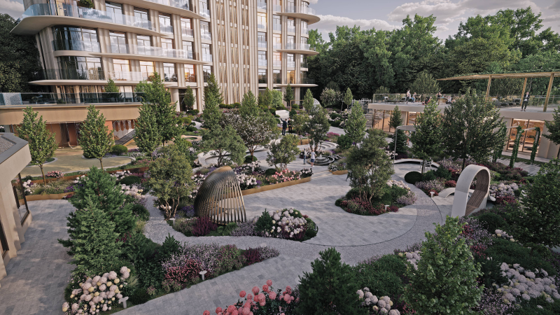 Для резидентов King & Sons предусмотрен сад, насыщенный экзотическими растениями, а также привычными нам вечнозелеными деревьями. «Таинственный сад» приглашает любоваться японскими видами, многочисленными террасами, продуманными зонами отдыха и развлечений, а также местами для занятий спортом и медитацией.