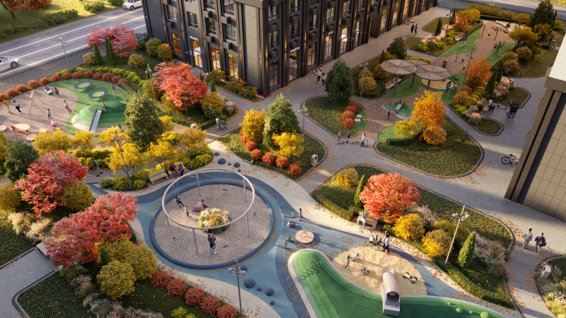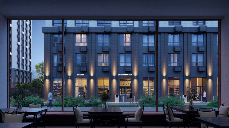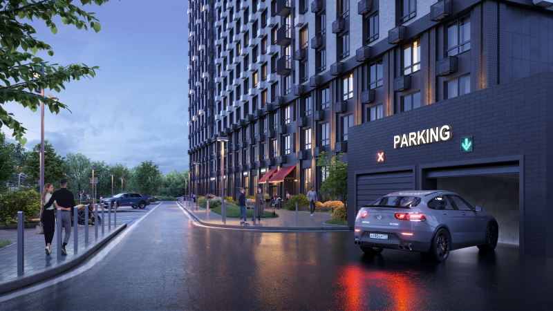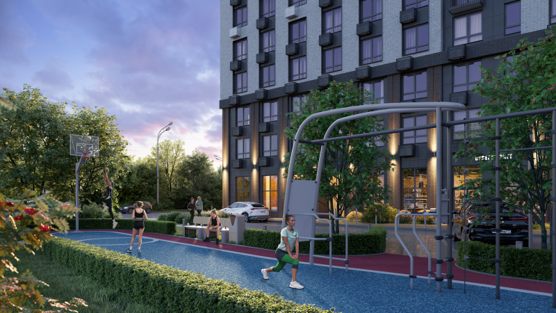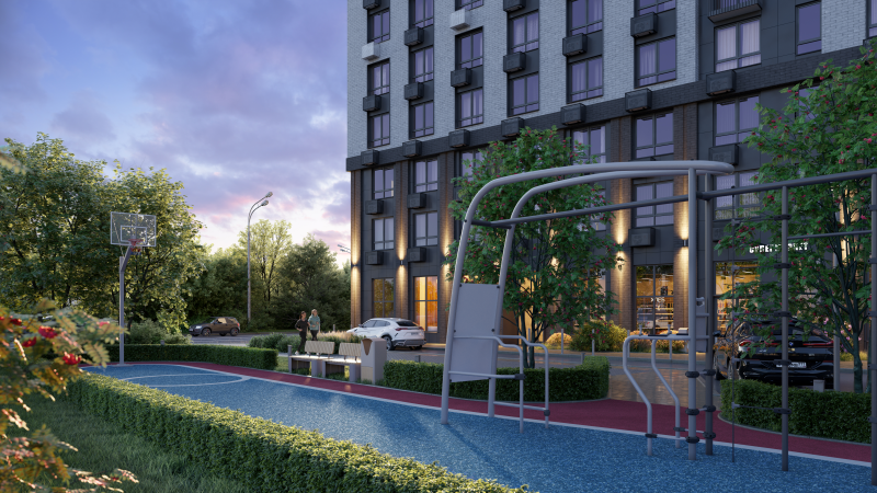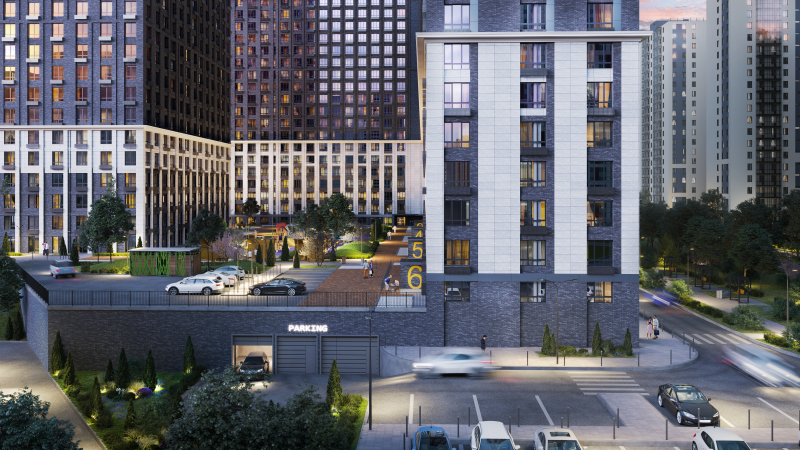 Комплекс класса smart business состоит из двух домов — башни и многоподъездного корпуса высотой 25 этажей. Фасады облицованы клинкерной плиткой, фиброцементными панелями и гранитом. На двух подземных этажах предусмотрен паркинг, рассчитанный на 394 машиноместа. Двор новостройки закрыт от посторонних и свободен от машин. Благоустройство территории включает в себя детские и спортивные площадки, игровые зоны, места для отдыха.