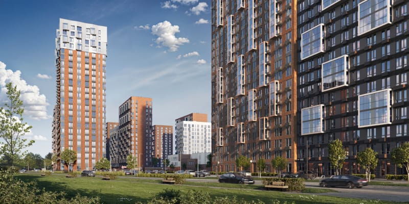Высота корпусов — 12, 17 и 24 этажа. Вдохновением для создания дизайн-кода «Лесные озера» стали живописные водоемы Горенского парка: приглушенные оттенки фасадов, естественные текстуры и солнечные блики на увеличенных окнах.