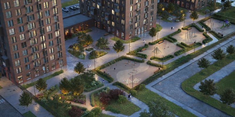 Чтобы наполниться энергией и умиротворением, достаточно выйти из квартиры во дворе. Здесь есть современные детские площадки, спортивные зоны и места для занятия йогой. Останется только купить коврик и захватить бутылочку воды.