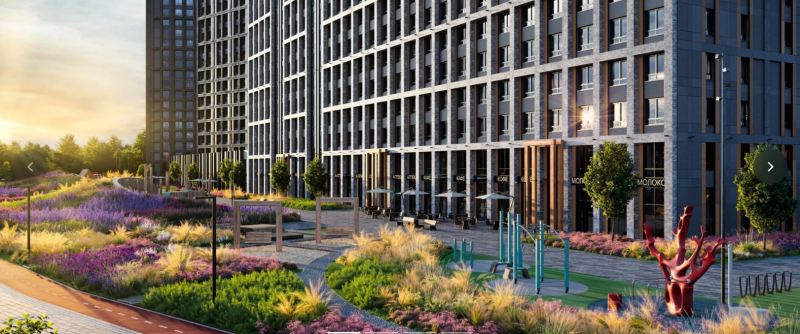 Ключевая особенность жилого комплекса - это концепция благоустройства, создающая ощущение загородной жизни в черте города. На территории появится большой сад с многолетниками, аллеи для прогулок и зеленые прогулочные бульвары.
