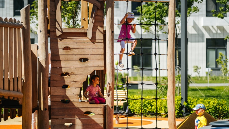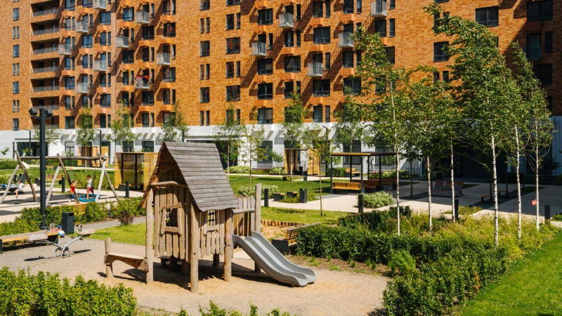Каждый двор в «Мещерском лесу» — это уютная территория с лужайками и цветниками. Во всех дворах несколько игровых площадок, сделанных из природных материалов. Здесь же можно заниматься спортом — на удобных площадках для воркаута. А за пределами дворов есть площадки для командных игр — так шум не мешает жителям.