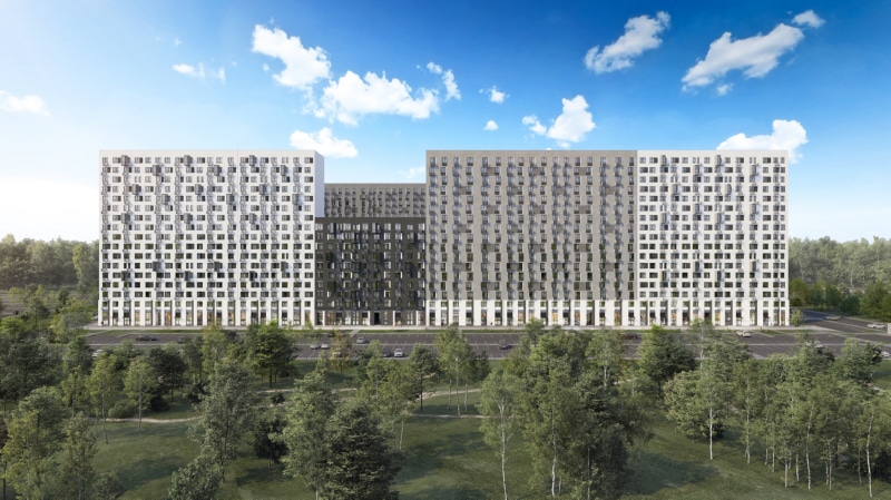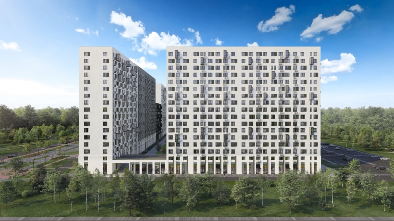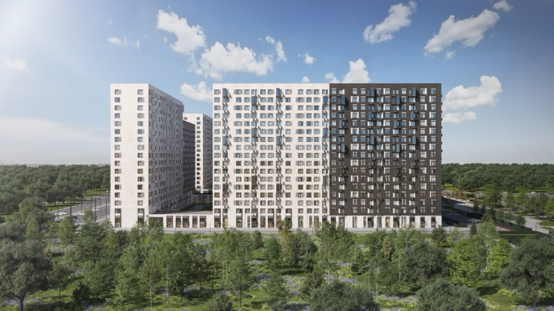 «Мытищи Парк» включает монолитные корпуса переменной этажности по 10–17 этажей. Фасады отделаны мокрой штукатуркой — это решение органично вписалось в пейзаж района. Входные группы корпусов расположены на уровне земли. В подъезд легко заедет коляска или велосипед, а ребенок сможет сам спуститься с самокатом на игровую площадку. На первых этажах оборудуют зоны для хранения колясок и велосипедов.