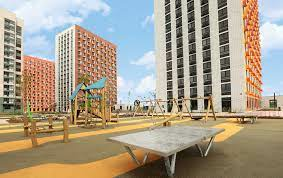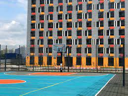 На территории комплекса создана универсальная среда, которая будет комфортна для всех социальных и возрастных групп. Для детей установлены современные игровые комплексы и качели из экологически чистых материалов. Для любителей спорта и командных игр построена баскетбольная площадка с травмобезопасным покрытием. В непосредственной близости от комплекса будет открыт детский сад.