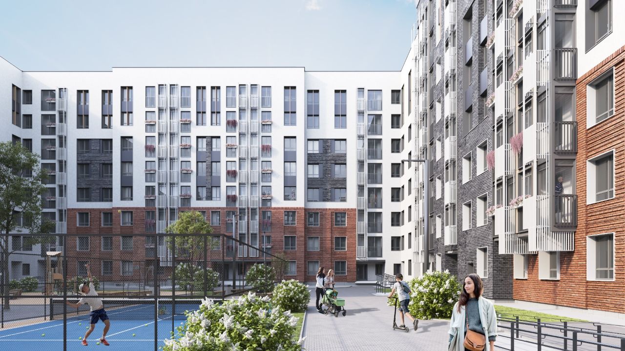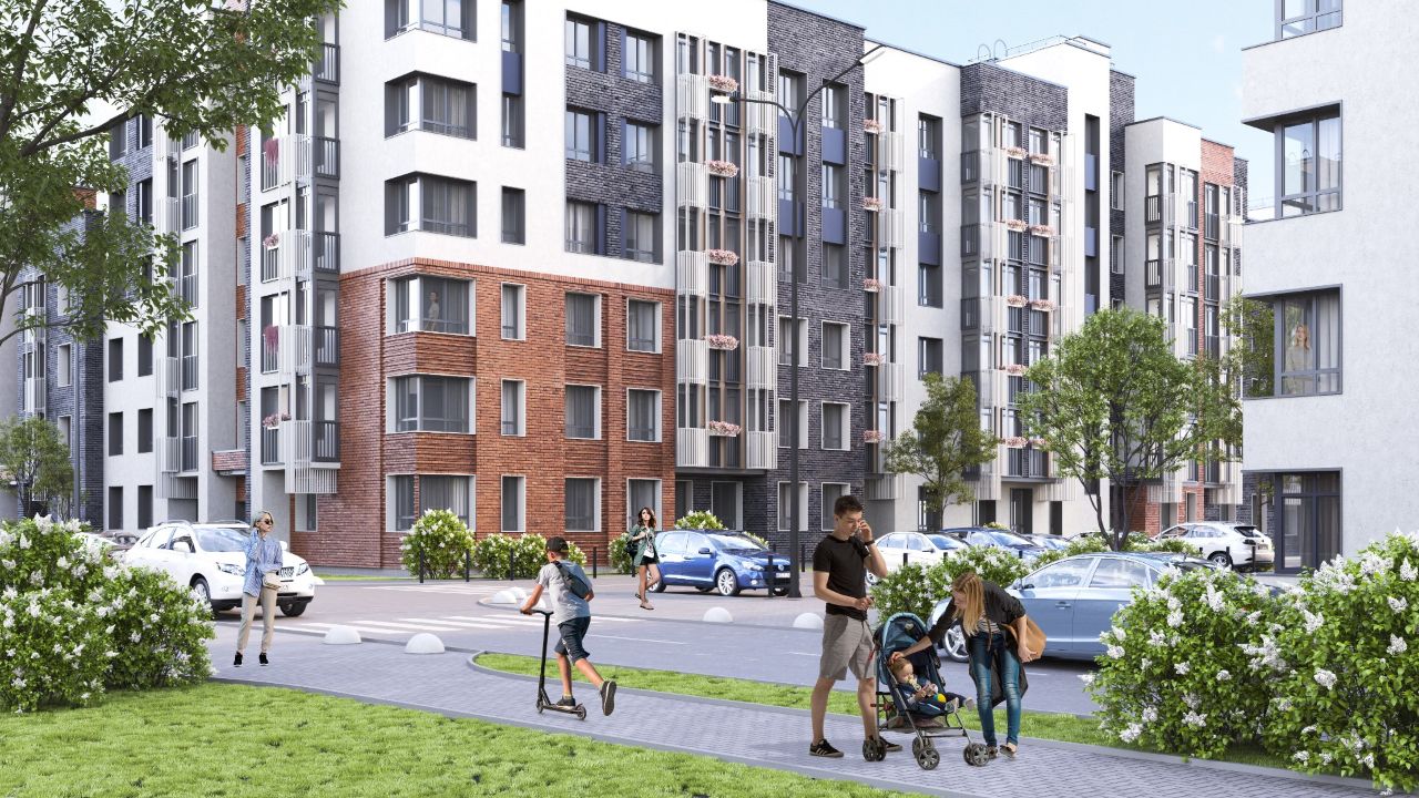 В концепции жк продумано элегантное оформление фасадов, продуманные планировки, красиво и функционально благоустроенные дворы. В первой очереди запланировано строительство 6 домов от 3 до 8 этажей. Это архитектурное решение позволяет избежать высокой плотности застройки. Внутренняя инфраструктура проекта предусматривает строительство 2 детских садов и школы. Во дворах предусмотрено строительство детских и спортивных площадок. Для автовладаельцев запланировано строительство многоуровневого наземного паркинга. Частые уютные дорожки, красиво обрамленные цветами и зеленью, станут излюбленным местом для неспешных прогулок. Маленькие жители смогут активно провести время на игровых площадках. А безопасное покрытие избавит родителей от лишних волнений. Реализация концепции «двор без машин» и красивое озеленение внутренней территории гармонично объединят пространство жилого комплекса в единый ансамбль.