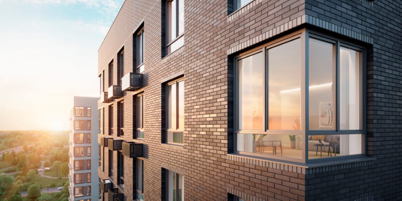 Название дизайн-кода «Лесные озера» говорит само за себя. Фасады облицованы декоративным кирпичом в оттенках речных камней: белом, сером, бежевом, терракотовом. Такое сочетание цветов напоминает песчаные узоры на берегу водоема. Отделку дополняют акцентные вставки из черного облицовочного материала с металлизированным эффектом. Облик домов 10–17 этажей дополняют увеличенные угловые окна.