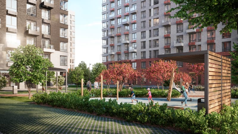 Почувствуйте ритм во дворах квартала «Новое Видное». В плейхабах бегают дети и играют в догонялки. На футбольном поле идет напряженный матч, а на баскетбольной площадке в сетку забрасывают мяч под музыку из колонки. Здесь дети катаются на велосипедах по благоустроенной набережной и по выделенным дорожкам, а на городской плазе подростки учат трюки на скейтбордах. В воркаут-пространстве соседи тренируются под открытым небом, в зоне для пикников намечается праздник, а пожилая пара читает друг другу книгу на скамейке в покет-парке.