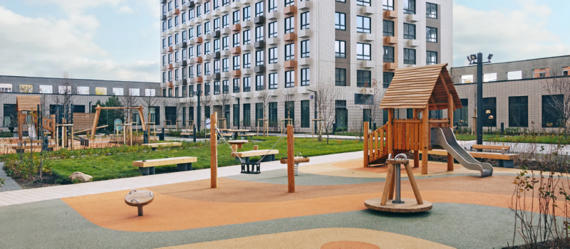 В проекте предусмотрена медленная зона для электросамокатов — с 7 утра до полуночи при въезде на территорию квартала скорость электросамокатов автоматически снижается до 15 км/ч.