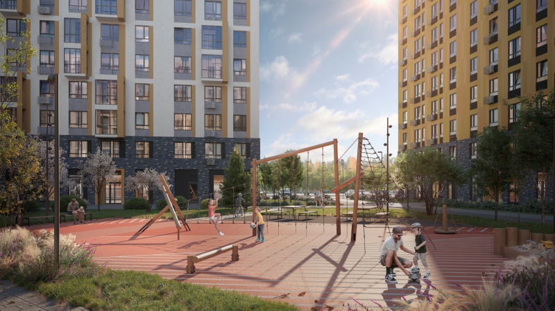 Подъезды сквозные, то есть с улицы можно перейти через холл во внутренний двор. Здесь жителей комплекса встретит тихое зеленое пространство с обустроенными зонами отдыха, рябиновыми аллеями и цветниками. Для детей всех возрастов построят два тематических игровых хаба.
