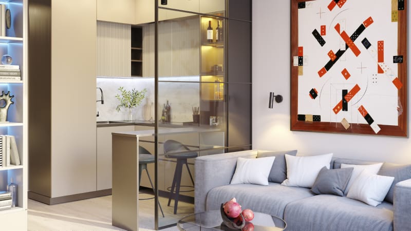 Присмотритесь к уютной студии или остановитесь на 2-комнатных апартаментах с гардеробной. Есть варианты с антресолью или панорамными окнами на последних этажах. Большинство апартаментов сдаются с готовой отделкой. Останется лишь выбрать дату для новоселья.