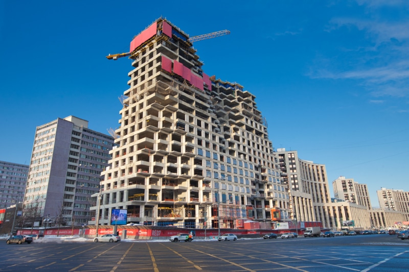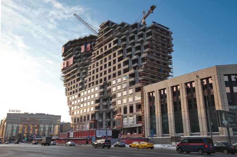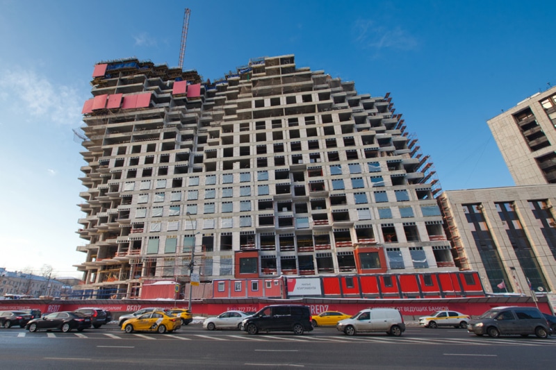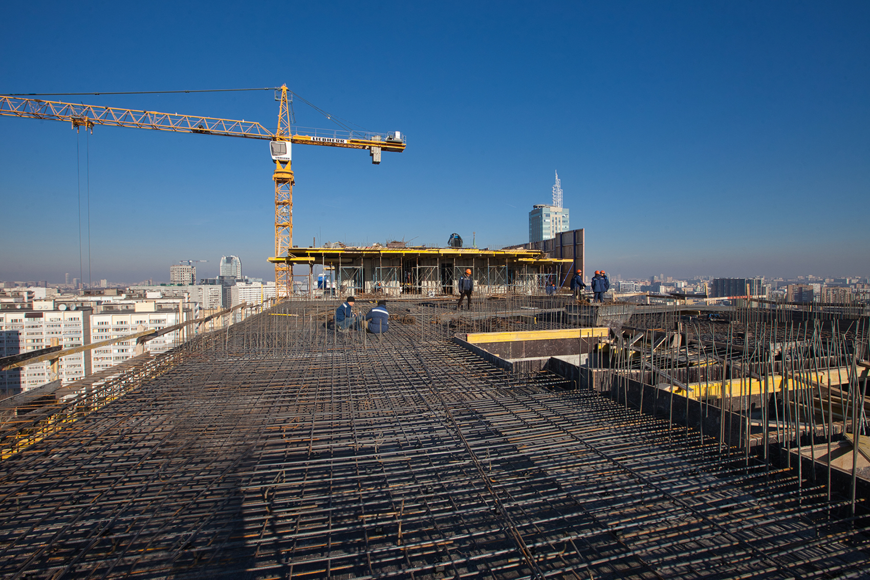 Возведение 19-го надземного этажа и установка витражных окон (12.01.22)