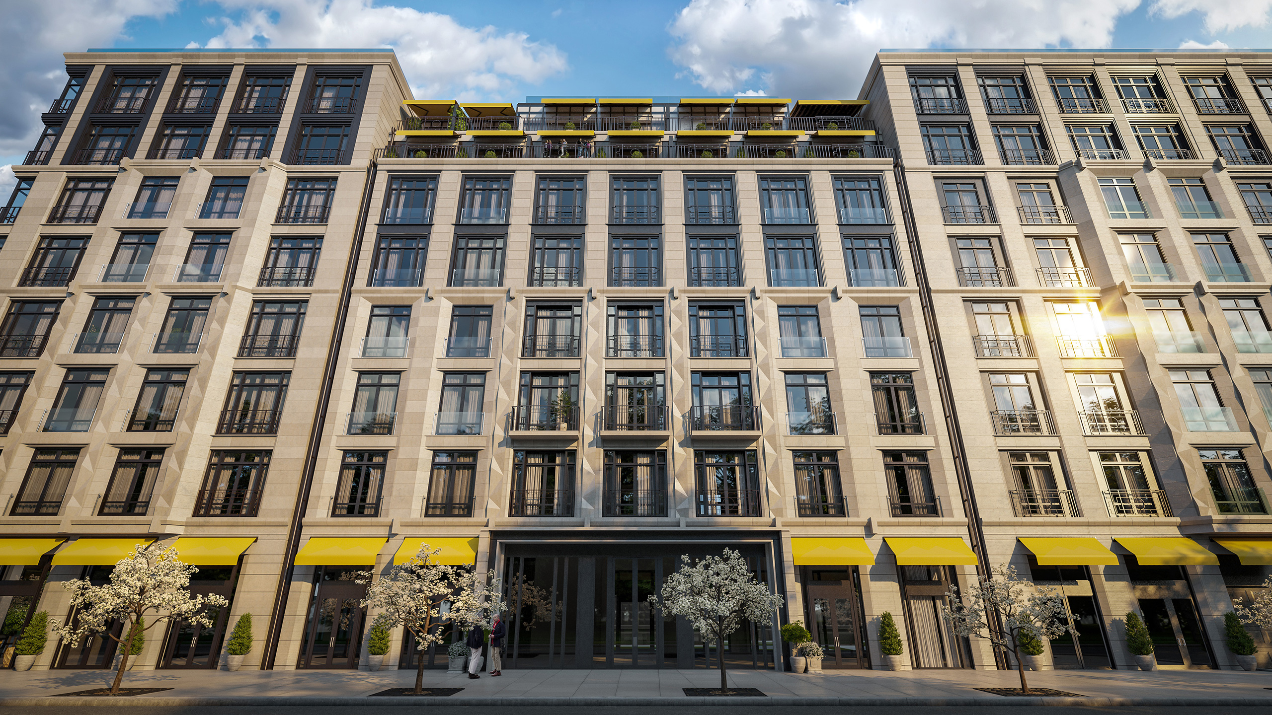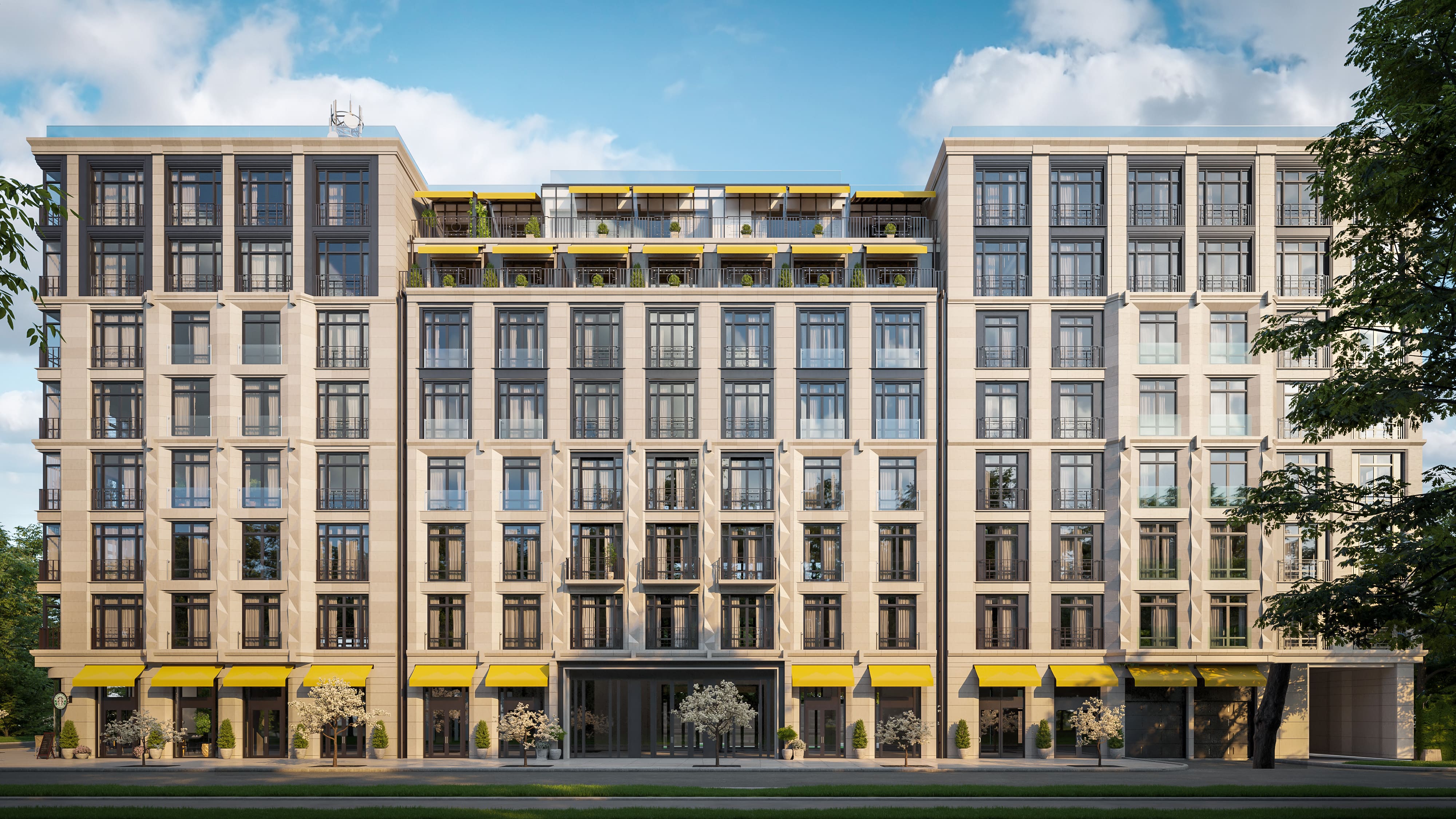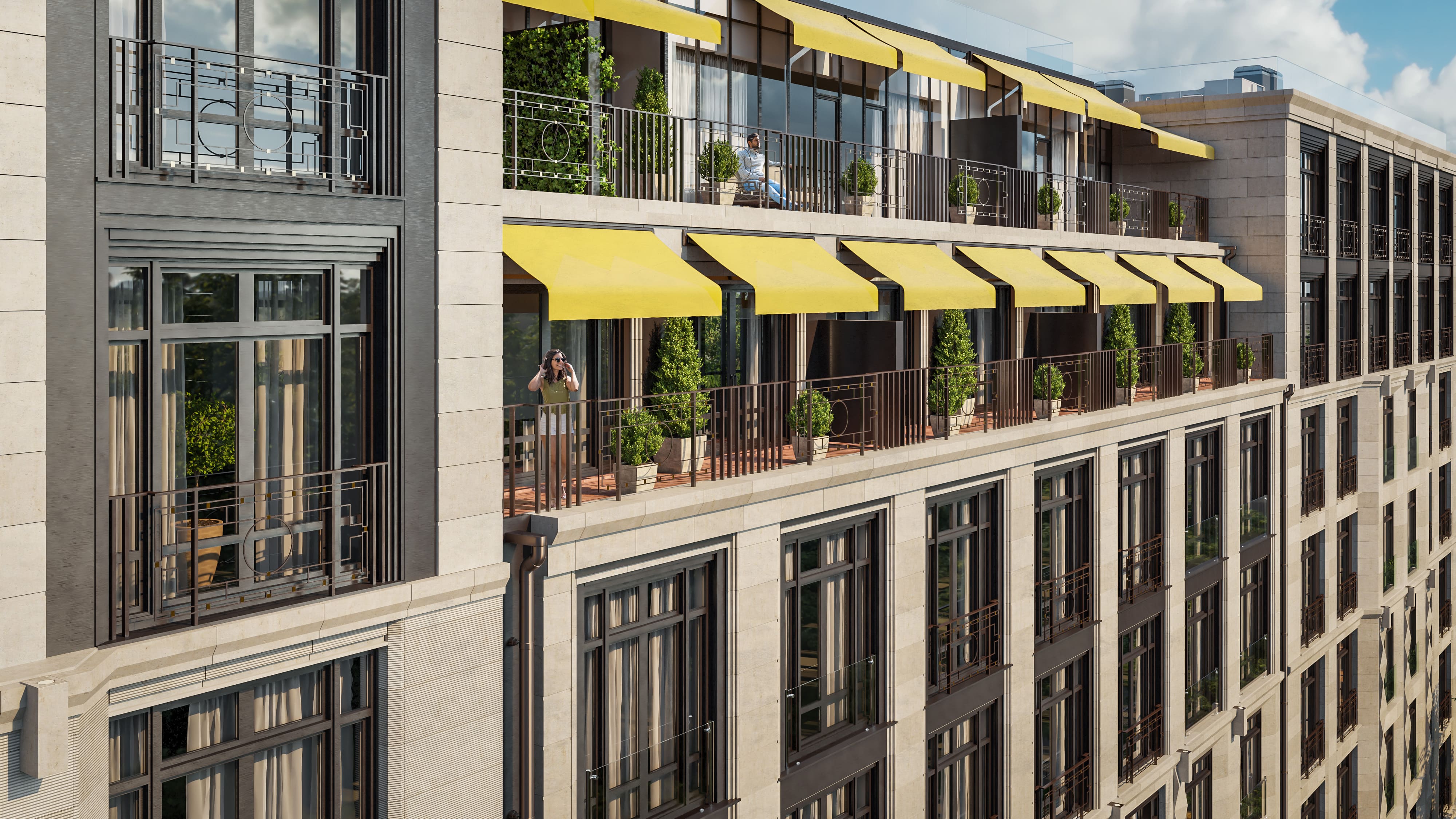 Апартаменты на верхних этажах имеют собственные террасы, которые являются удобным и функциональным пространством.