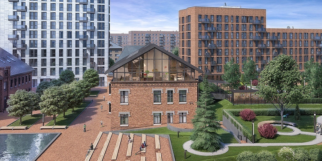 Жилой комплекс с панорамными видами на Павелецкую набережную построен на территории старинной фабрики и сохраняет в себе архитектурные традиции XIX века.