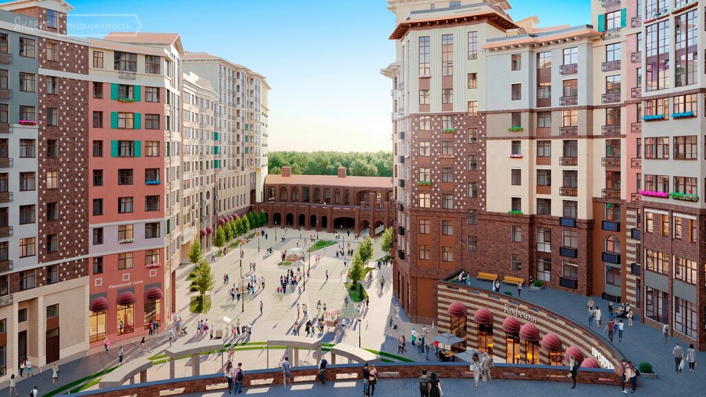 Две части квартала будет соединять декоративный пешеходный мост. Из любого вестибюля жители «Римского» смогут выйти в собственный тихий двор на прогулку, или спуститься на нижний уровень, где сосредоточена вся коммерческая инфраструктура квартала.