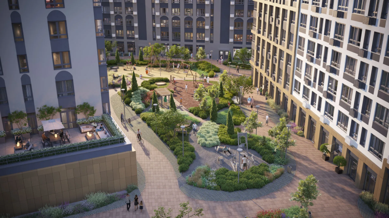 В основе проекта – стремление воссоздать для людей, переезжающих в столицу из разных точек России, добрую атмосферу родного дома. Через весь район пройдёт главный бульвар, который свяжет набережную, жилые кварталы и площади в единое дружелюбное пространство, органично наполненное узнаваемыми элементами культурных традиций разных народов.