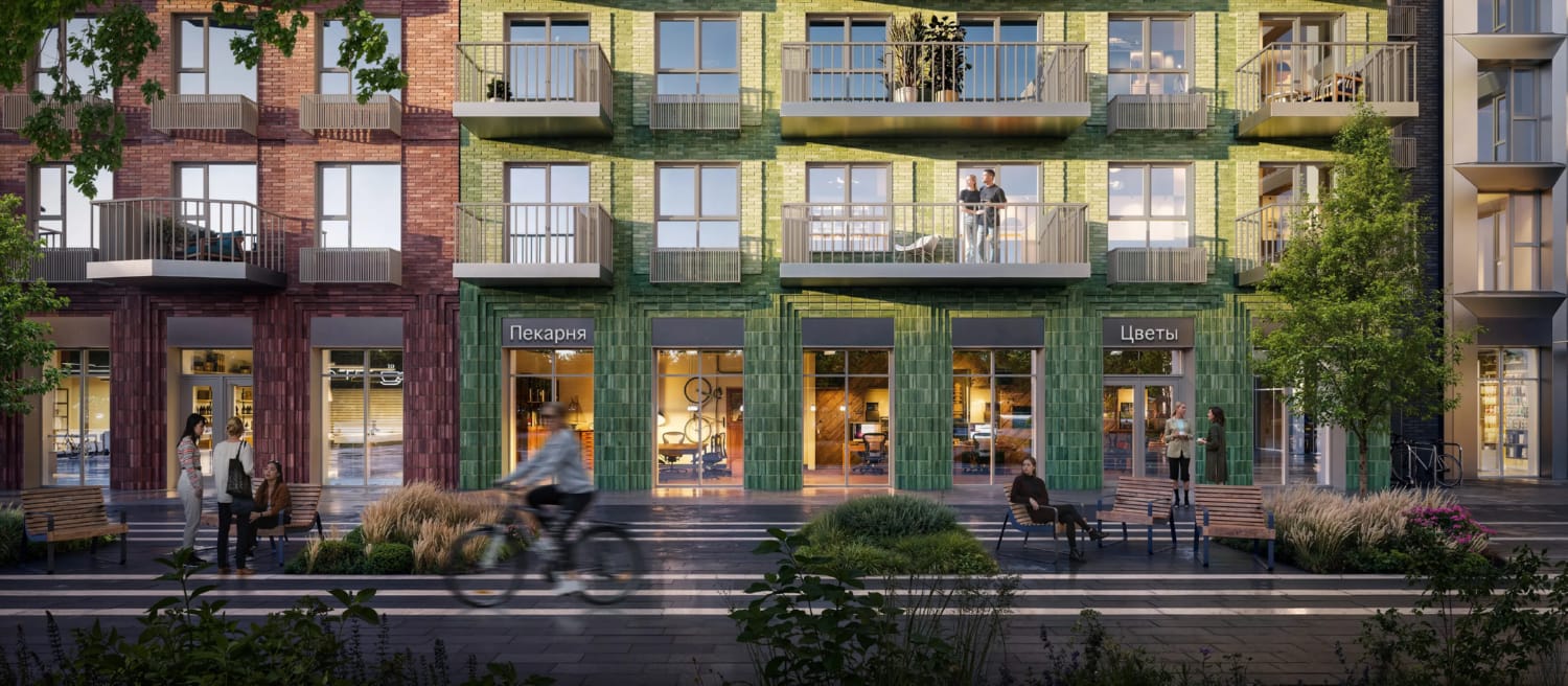 В безопасных подъездах можно будет оставить велосипед или коляску. На первых этажах откроются кафе, магазины, пекарни и другие сервисы — за кофе и завтраком можно будет просто спуститься на лифте.