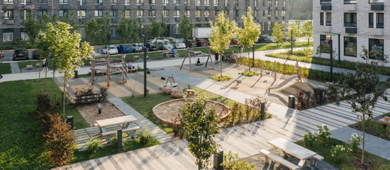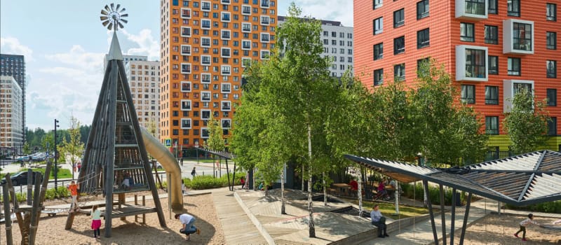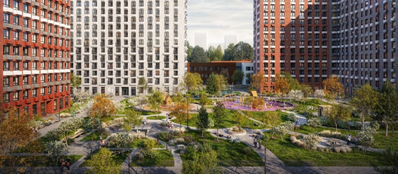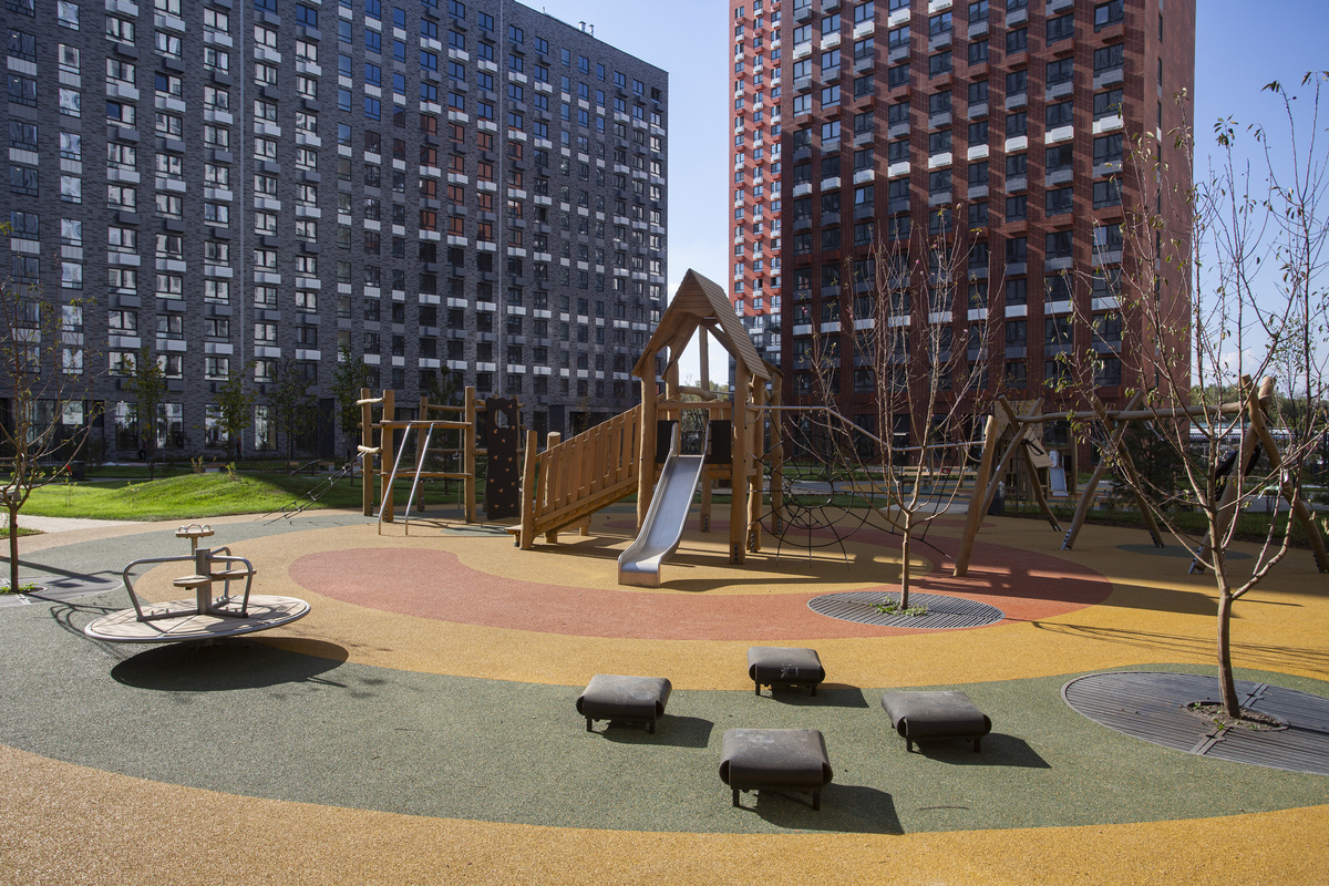 Все корпуса в квартале гармонично сочетаются, образуя единую городскую среду. Здесь приятно гулять и проводить время на улице всей семьёй.