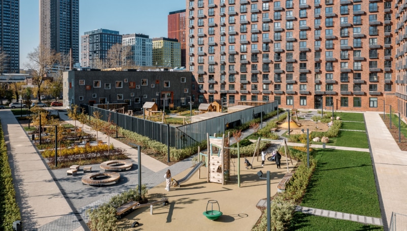 В зелёных дворах-парках без автомобилей предусмотрены детские площадки и места для отдыха. Жилой комплекс расположен в развитом районе с необходимой инфраструктурой. В пешей доступности ТЦ «Райкин Плаза», школа и детский сад, поликлиника. В окружающем районе есть все необходимое для комфортной жизни: детские сады, школы, поликлиники, торговые центры.