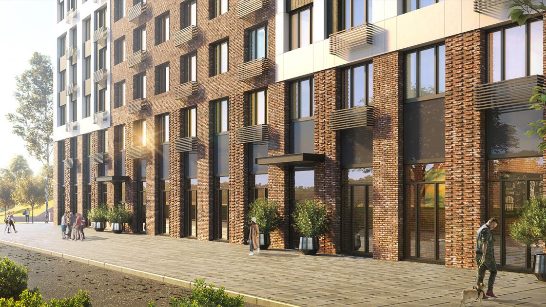 Здесь разместятся 1152 апартамента площадью от 20,7 до 42,31 кв. метра с чистовой отделкой. На первом этаже здания будут расположены коммерческие помещения, где откроются супермаркет, аптека и другие необходимые для повседневной жизни заведения. В подземной части дома разместятся кладовые.