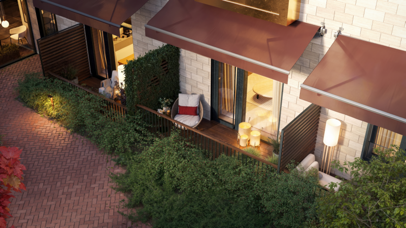 Высота зданий не превышает шести этажей, гарантируя владельцам жизненный комфорт — нижние уровни получают столько же солнца, сколько и верхние.