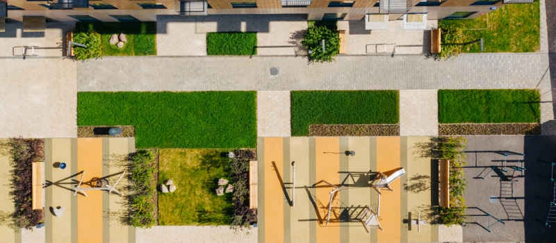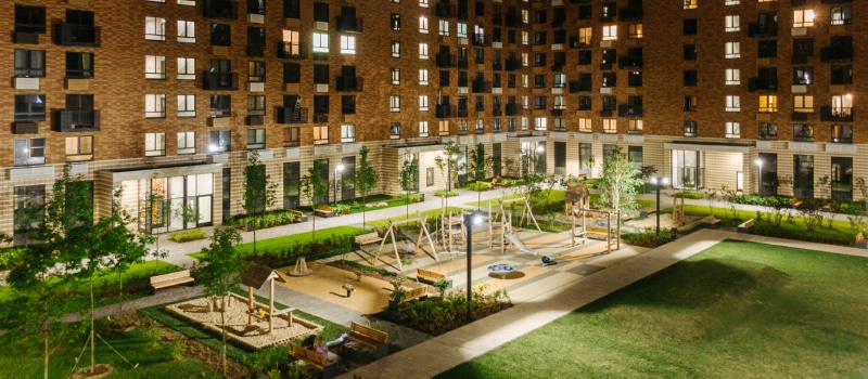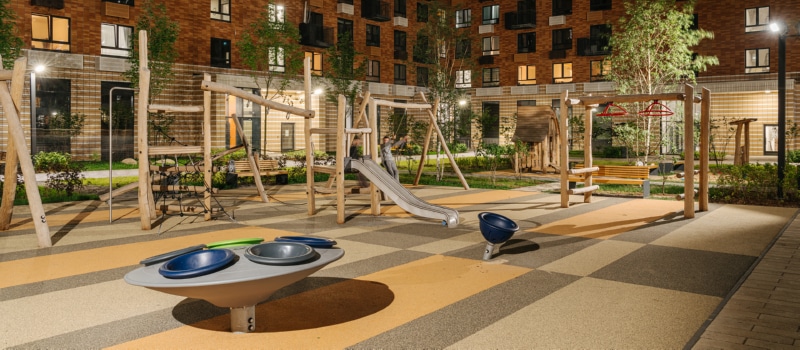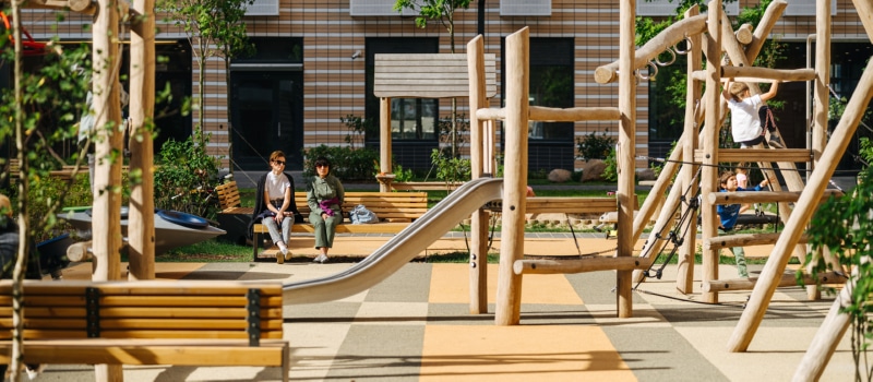 В проекте предусмотрена медленная зона для электросамокатов — с 7 утра до полуночи при въезде на территорию квартала скорость электросамокатов автоматически снижается до 15 км/ч.