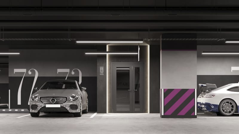 Машину можно оставить на многоуровневом подземном паркинге с доступом на лифте. Есть станция для зарядки электромобилей.