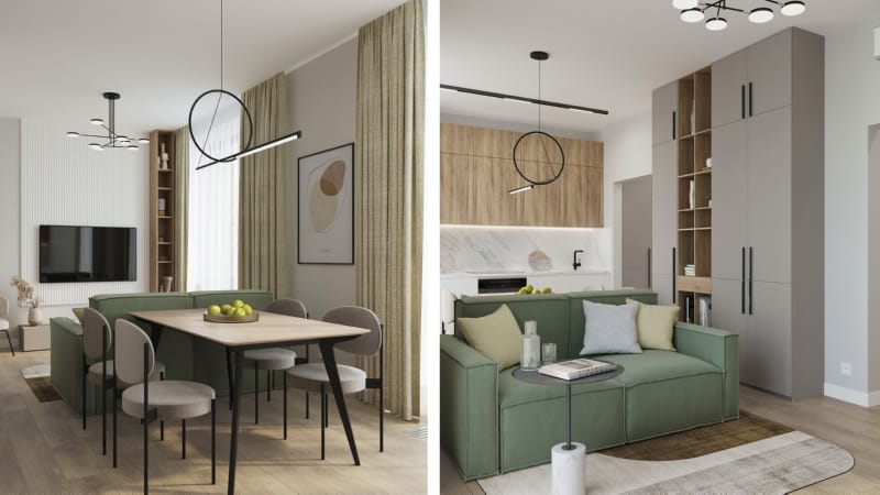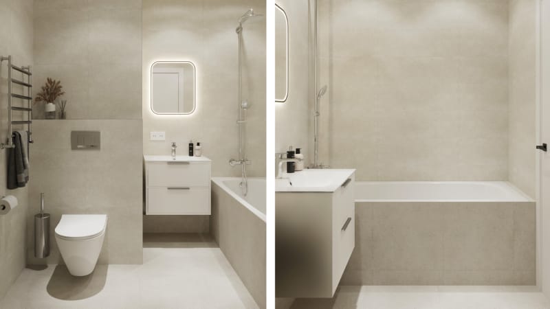 У будущих резидентов есть выбор из трех вариантов: апартаменты без отделки, с отделкой White Box или чистовой отделкой в светлых тонах. В чистовой отделке стены будут покрашены, полы покрыты инженерной доской, установлены натяжные потолки и белые межкомнатные двери. В санузлах — плитка, установлены сантехника и теплый пол, зеркало с подсветкой и электрический полотенцесушитель. Немного творчества — и пространство наполнится мебелью, декором, текстилем. Если захочется поскорее пригласить гостей на новоселье, есть апартаменты, где можно дополнительно установить кухонный гарнитур бизнес-класса от застройщика.