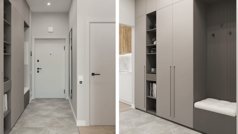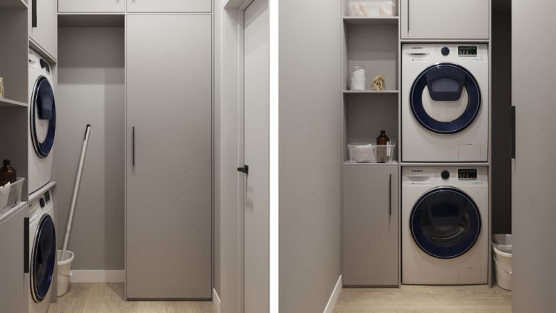 Обустройте роскошное место для хранения одежды, обуви и аксессуаров в апартаментах с гардеробной. Кстати, сезонные вещи и спортивный инвентарь удобно оставлять в кладовых на техническом этаже, куда легко попасть на лифте.