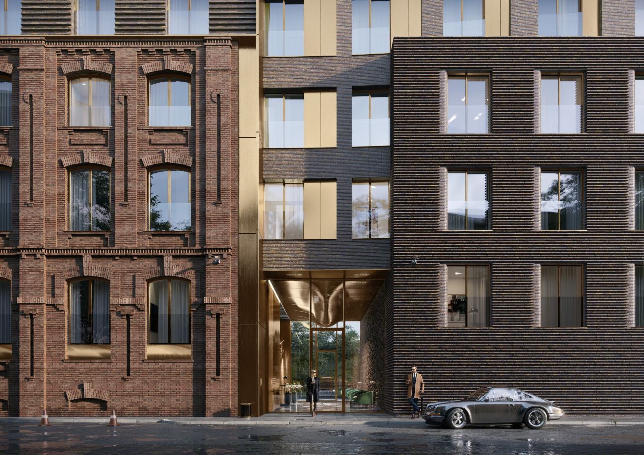 Узнаваемый стиль мэтра гармонично вписан в исторический и культурный контекст района. При строительстве дома используются современный кирпич ручной формовки и архитектурная бронза.