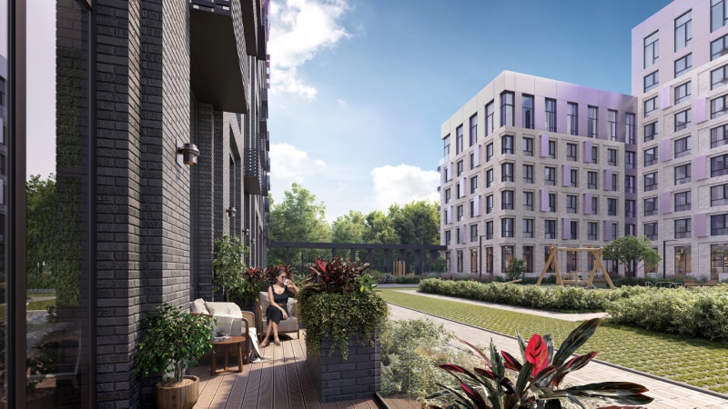 Патио — апартаменты на 1 этаже с потолками высотой 4,5 метра, панорамными окнами и собственной приватной террасой. Ваше личное пространство не заканчивается за окном: выходите из комнаты на свежий воздух в любое время.