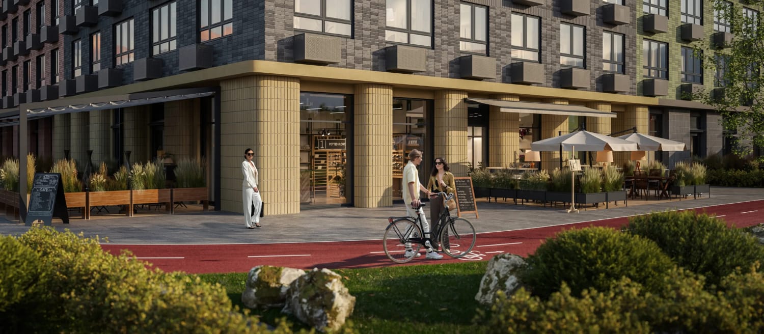 Вблизи жилого квартала появятся шумопоглощающие экраны, позволяющие забыть о том, что неподалёку находятся железнодорожные пути. На первых этажах домов откроются магазины, кафе, салоны красоты и другие полезные сервисы. Рядом есть школы и детские сады, магазины и ТРЦ «Красный кит».