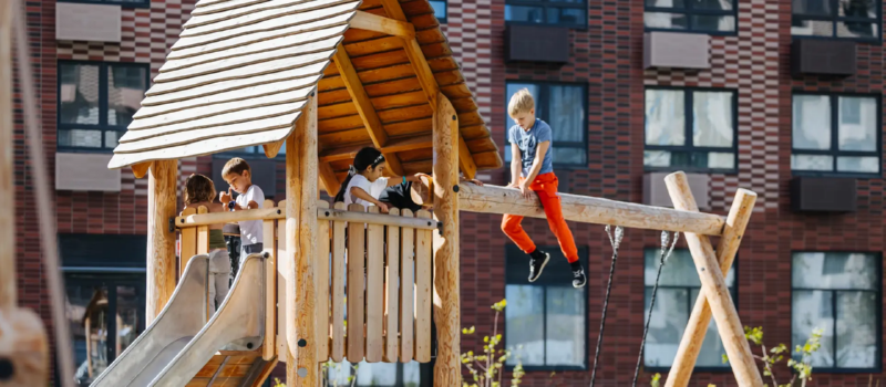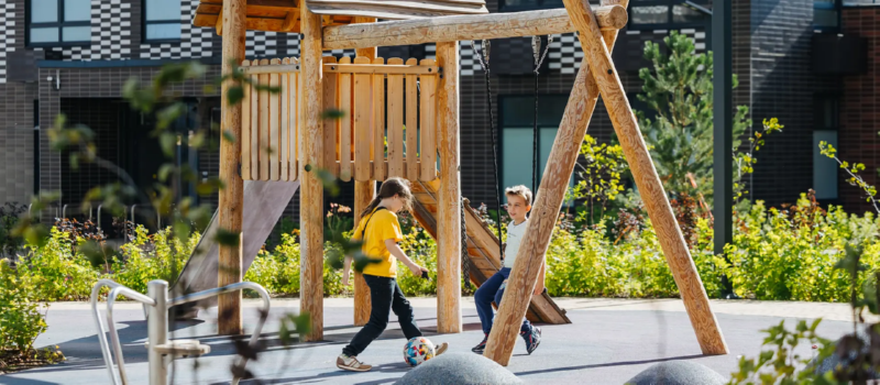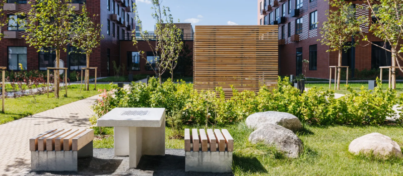 Во дворе «Ютаново» будет собственный парк с местами для отдыха, детскими и спортивными площадками. На первых этажах откроются магазины, кафе и другие сервисы.