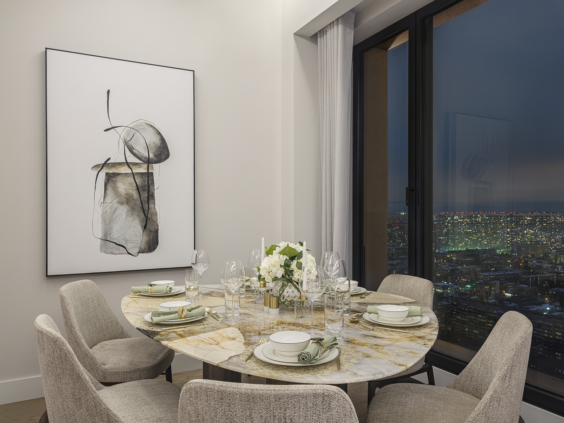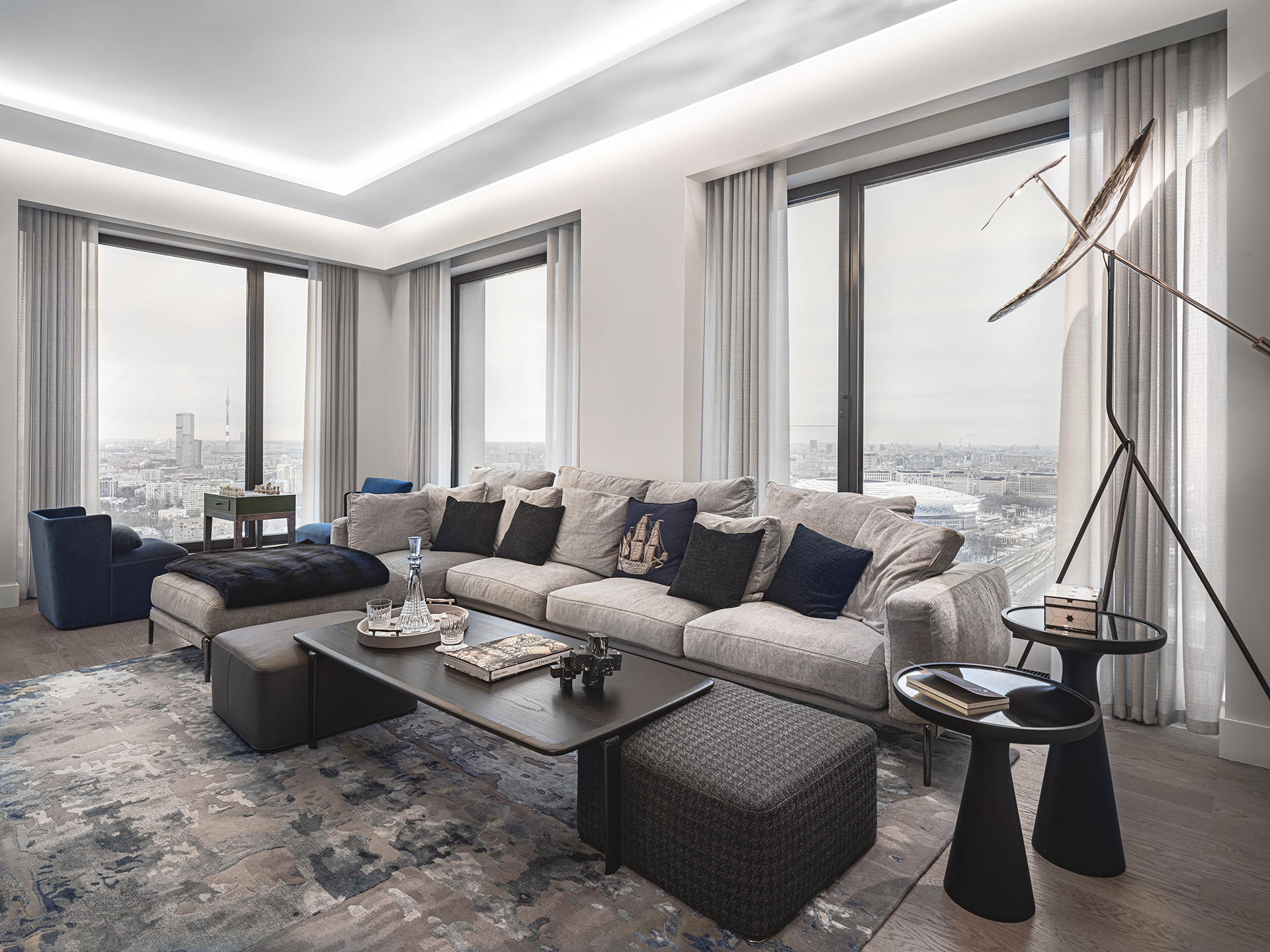 В комплексе к продаже представлены квартиры с количеством комнат от одной до четырех (а также дуплексы и пентхаусы), площадью от 40,2 кв. метра до 375 кв. метра с потолками высотой от 3,1 метров.
