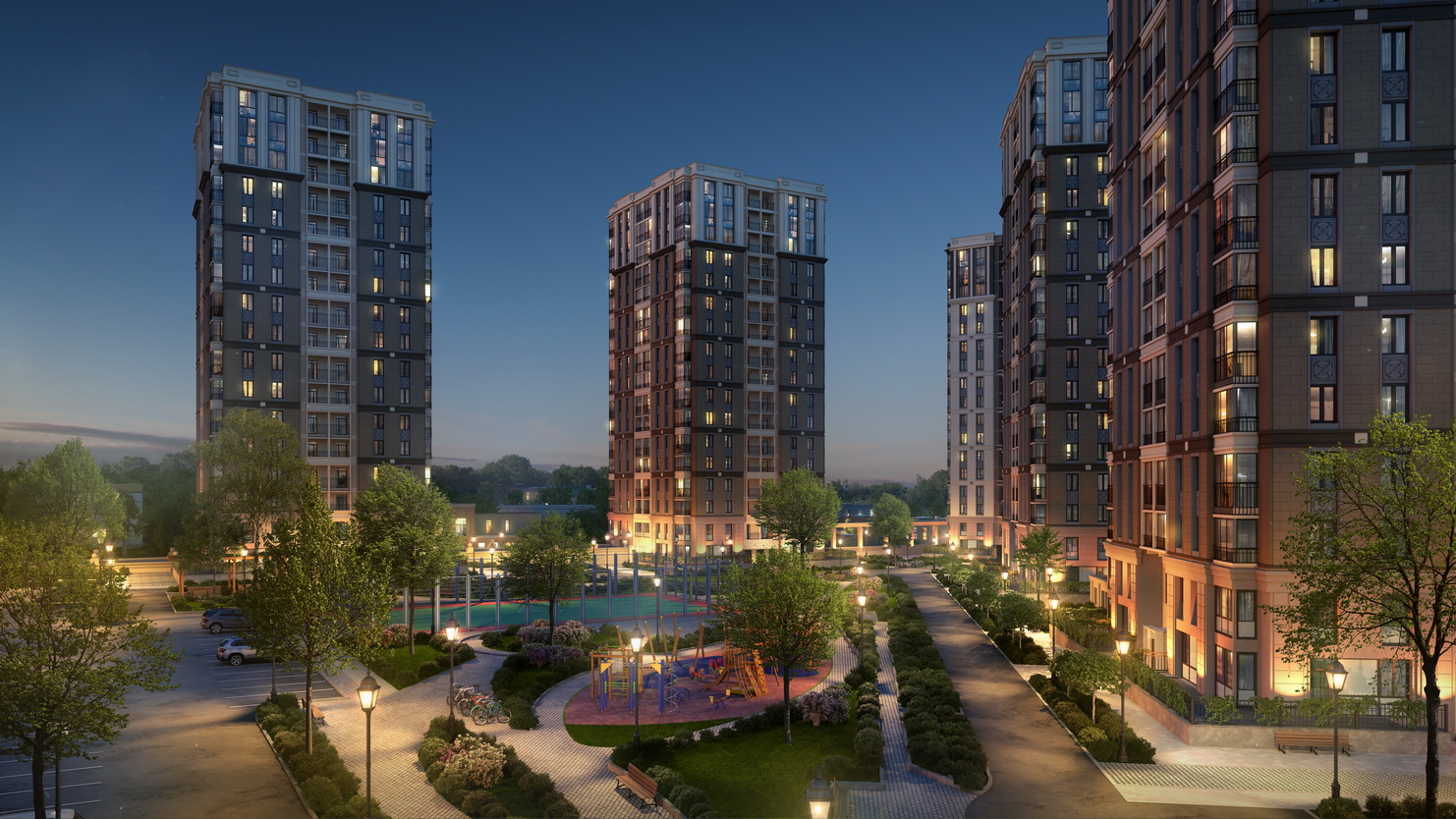 На территории находится просторный благоустроенный двор с детскими и спортивными площадками, лавочками и дорожками для прогулок. Комплекс расположен в районе со сложившейся инфраструктурой, рядом с крупнейшими московскими парками — «Сокольники» и «Лосиный Остров». В пешей доступности — станция метро «Преображенская площадь» и МЦК «Бульвар Рокоссовского».