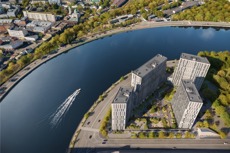 Дома расположены у Симоновской набережной. За 7–10 минут можно дойти до ландшафтного парка «Тюфелева роща» и благоустроенной набережной Марка Шагала. в 5 минутах езды находится парк развлечений «Остров Мечты».